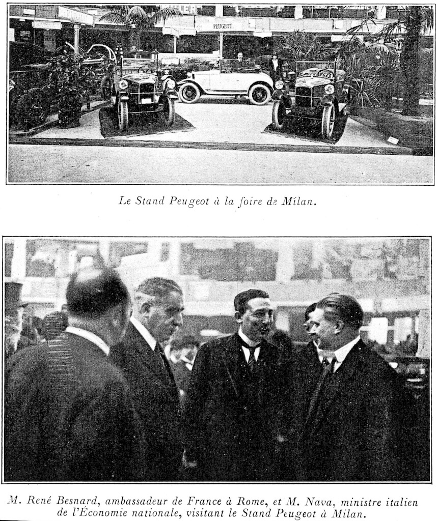 Presidente fu nominato Robert Peugeot, Consigliere Lucien Rosengart, il finanziere che credeva nell’espansione all’estero. La sede venne stabilita in Viale Umbria, 32 a Milano; oggi l’edifico riconvertito esiste ancora. Già a marzo il Direttore Generale Charles Gougné viene sostituito da Jean Eugène Lavergne e a partire dal 20 aprile, fino ad agosto 1926, vennero spedite circa 250 vetture da assemblare con pneumatici Pirelli, impianto elettrico e strumentazione Magneti Marelli, orologio Boselli e finiture più curate spesso con cruscotto in legno. Oggi di queste vetture ne risultano esistenti meno di dieci. Alla prima Mille Miglia del 1927 una squadre di 3 vetturette si aggiudicò la classe, ribadendo così l’affidabilità delle piccole 5 CV francesi. Quando il Regime in piena autarchia alzò le tasse di vendita per vetture straniere al 130% del prezzo di listino Peugeot capì che l’esperienza italiana doveva terminare e, dopo aver presenziato all’ultimo salone di Roma del 1929, all’inizio del 1930 dovette chiudere definitivamente lo stabilimento di Milano.